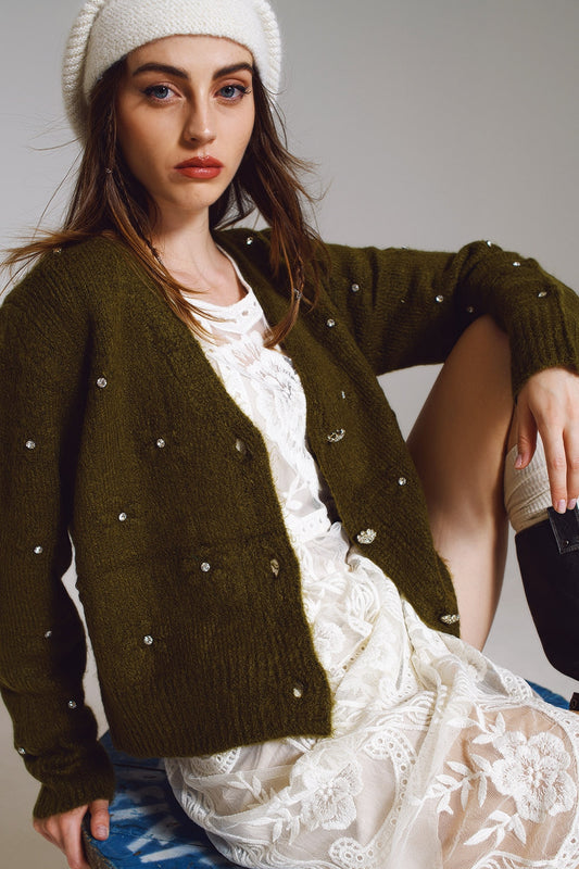 fluffy Gray Cardigan with Heart Buttons