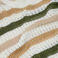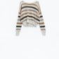 Suéter blanco de crochet de manga larga con cuello barco y rayas marrones