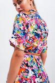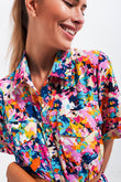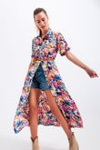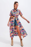 Largo medio. Vestido. Escote cuello ancho. Mangas cortas. Todo impreso. Forma relajada. Confortable. Cinturón del mismo tejido incluido. Tela tejida ligera. Bolsillos en el pecho. Tapeta de botones. Costura doblada. Bolsillos funcionales. Cinturón no incluido. funciona fiel al tamaño. S.