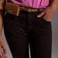 Vaqueros pitillo de talle alto en marrón