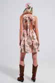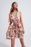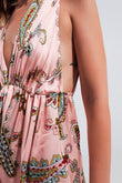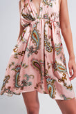 Longitud recortada. Vestido. Escote en V. Estilo sin mangas. Estampado cachemir. Forma relajada. boho Abrir de nuevo. Sensación de ligereza. Cierres de amarre. Escote pronunciado. Cintura elástica. funciona fiel al tamaño. S.