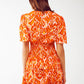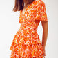 Mini vestido con cuello en V en estampado floral naranja