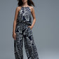 Navy and White Sleeveless Halter Top with White Leaf Print