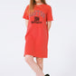 Vestido camiseta midi rojo Boston 1984 University