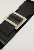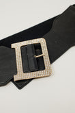 Cinturón ancho elástico negro con detalles de pedrería