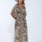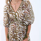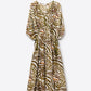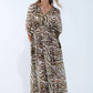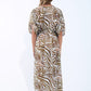 Step into style with this exquisite flowy chiffon maxi dress an ideal addition to your wardrobe for any occasion! The dress features a stunning V-neck design that enhances your neckline and adds a touch of elegance. The playful elbow sleeves not only offer a unique detail but also provide a comfortable fit allowing for ease of movement.What truly sets this dress apart is the eye-catching zebra print which combines earthy khaki and rich brown tones. This bold pattern adds an adventurous and trendy edge making it a standout piece that’s sure to turn heads. Designed with a relaxed fit the dress ensures all-day comfort allowing you to look stylish without compromising on ease.The drawstring waist adorned with charming tassels allows you to tailor the fit to your liking giving you the freedom to create a silhouette that flatters your shape perfectly. Crafted from lightweight chiffon fabric this dress is breathable and perfect for warm weather making it an excellent choice for summertime outings.